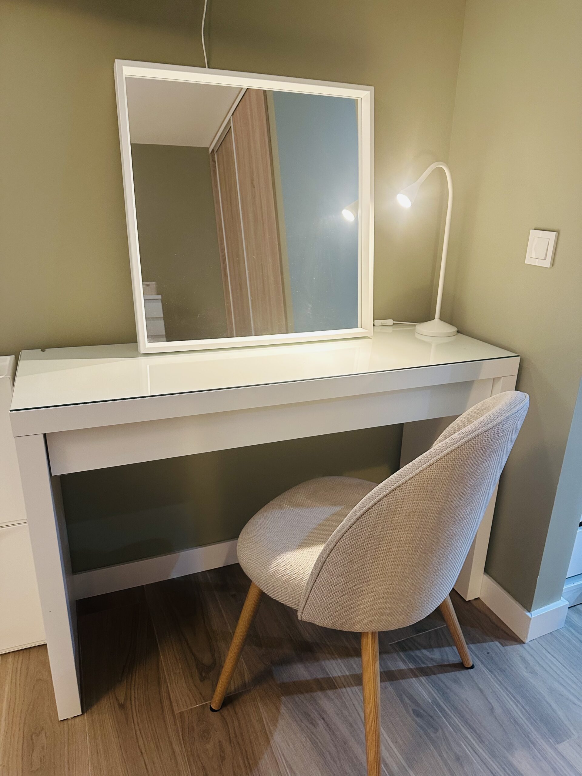 Hårføner og steamer til klær finnes også i leiligheten.