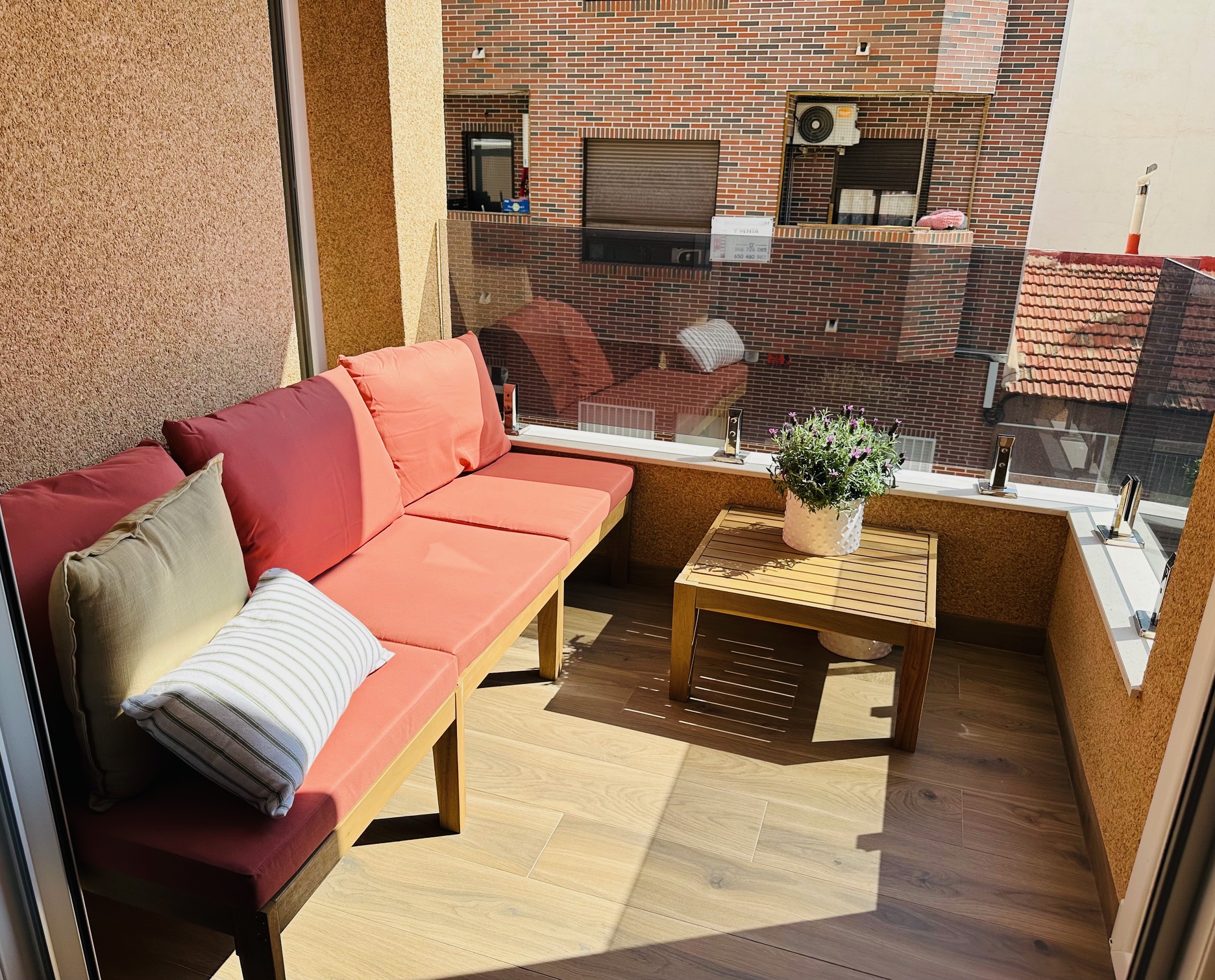 Balkong vendt mot øst med koselig sittegruppe og perfekt for å nyte morgensolen.
